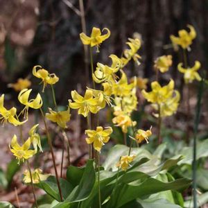 キバナカタクリの群生 透明感のある美しさ