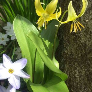 こんなに早く2個とも咲き揃うとは 暖かさのせいね🌸 お日様にあたり、眩しい、やめてと 言っているみたい✨
