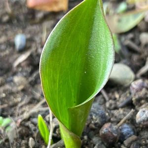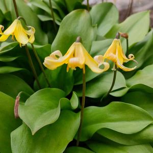 連日の雨で 庭のあちこちに 球根の芽吹き🌱 小さな花芽が覗いているのは 💛黄花カタクリ💛