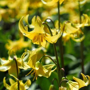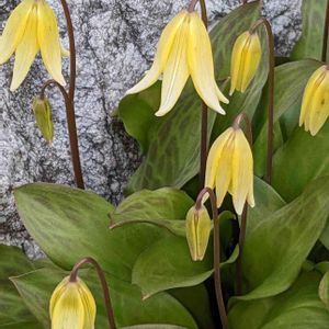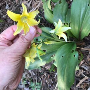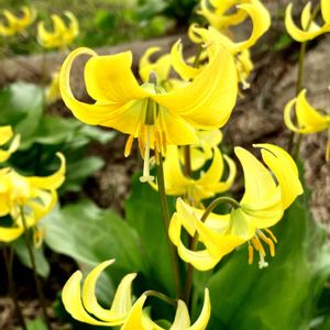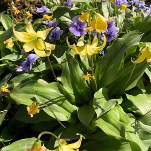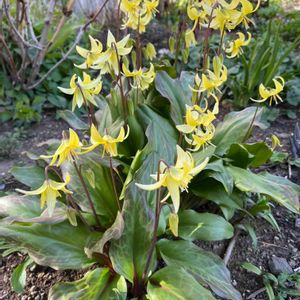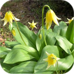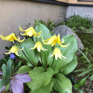 キバナカタクリはカリフォルニア原産のエリスロニウム・トルムネンセの交配種です。 日本のカタクリよりも大型で増殖しやすく花数も多くなり、とても育てやすい品種です。