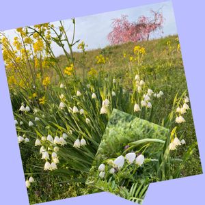 スノーフレークさん (鈴蘭水仙) 河川敷の所々に群生してました💓 八重桜と菜の花とコラボ➰😍🎶