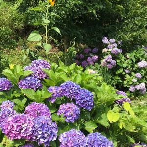 精進湖からその3 今だからこそ♡♡ 紫陽花と向日葵のコラボ👏✨ 2019.8.4.撮影