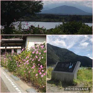 昨日のお花 コスモス 精進湖から富士山を眺めました。