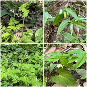 今日のお出かけ先 山野草に 会えて うれしい ひととき でした 左 ヤブジラミ 右上 ホウチャクソウ 右下 チゴユリ