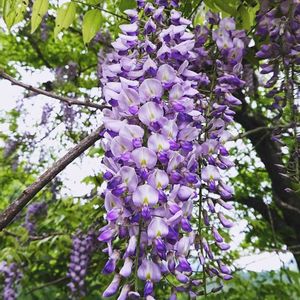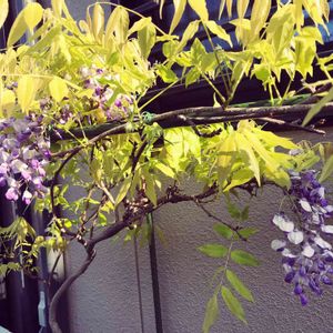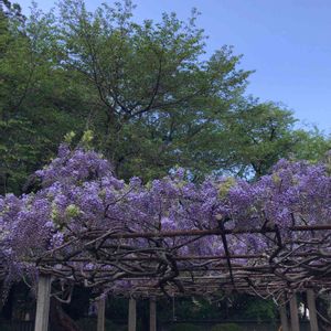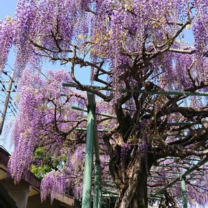 お寺の境内で咲く藤のお花棚よりも高くのびのびと弦を伸ばして🎶