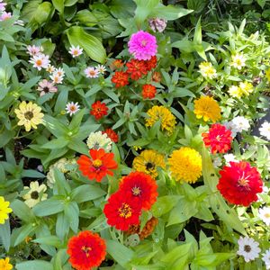 こんにちは😃 ジニア畑のジニア達 元気に、咲いてますが、🌺花が、小さくなって来た様な😅 台風にやられ無いと、いいな😅 午後も、暑さに気をつけて下さいね😄