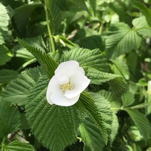 シロヤマブキ(白山吹)が咲いていました。 バラ科ですが、ヤマブキ(山吹)とは別種です🎶 違いは、次の通り✨ ▫シロヤマブキは花が4弁、ヤマブキは5弁 ▫シロヤマブキは葉が対生、ヤマブキは互生 ▫シロヤマブキは枝先に一輪の花、ヤマブキは枝一面に無数の花