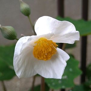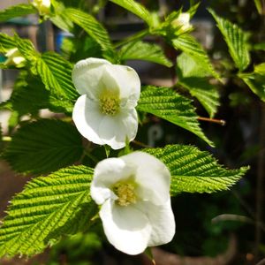 白山吹(シロヤマブキ) バラ科シロヤマブキ属の落葉低木。中国地方などに自生するがまれで、庭木や公園樹として植えられる。花期は4~5月。葉が山吹(ヤマブキ)によく似ていて、植え込みに使われる低木で、枝が緑色(本種は1年目の枝のみ緑色)も共通するが、ヤマブキの花が黄色なのに対して本種は白い。花色だけでなく、ヤマブキの花弁がバラ科基本の5枚なのに対し、本種は4枚。葉のつき方がヤマブキは互生、本種は対生という点が決定的な違い。果実は痩果。黒くて光沢があり、ヤマブキの果実が5個つくのに対し、本種はふつう4個つく。4つずつかたまってつくので四つ目ともいわれる。 シロヤマブキはヤマブキに似ているが、日本がまだ江戸時代だった19世紀、シーボルトとツッカリーニによりシロヤマブキ属として独立した。ヤマブキに似ていて花が白いことが名前の由来。白い花が咲くヤマブキもあり、シロバナヤマブキという。混同することのないよう注意が必要。 出典『葉っぱで見わけ五感で楽しむ樹木図鑑』『都会の木の花図鑑』『草木の種子と果実』『樹木の名前』