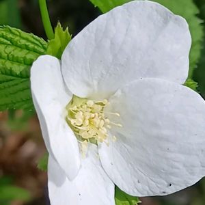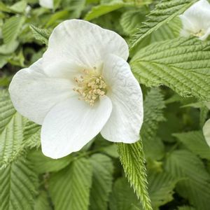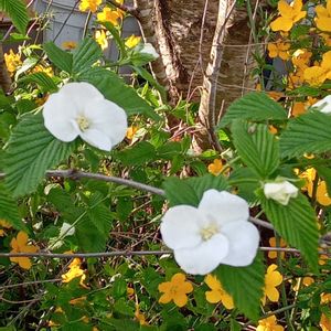 花期が短く、去年は撮影しそこねた白花の山吹💠 今年は成功しました🎶 母が数年前、お友達のお庭から生えてきた(種から?)小さい苗を頂いたそうです🌱