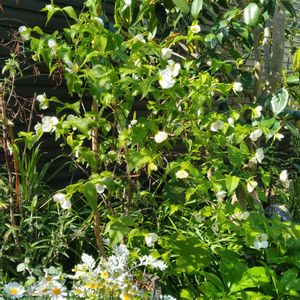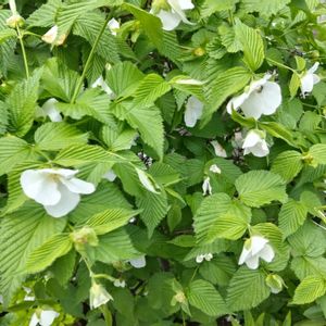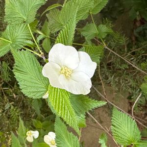 YS散歩🍀 今日の最高21℃最低12℃ 暖かい日で2人で除草の下見にあちこちへ🚲 含めて今月末までに6日入りました🌿 【シロヤマブキ】🌿🤍🌿 バラ科の落葉低木 枝先に花を咲かせ緑の葉っぱ と映えますね♪♪ 花言葉「純粋,清らかさ」 環境省レッドリスト2020では絶滅危惧1B類に選定されてます。