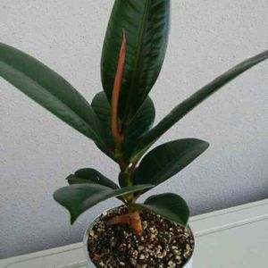 こんにちは🤗 浦和美園店 山中です(๑ᴖ◡ᴖ๑) フィカス•バーガンディ 別名 黒ゴムの写真です😍 新しい葉っぱが出てきました(๑˃̵ᴗ˂̵) 葉がツヤツヤしていて綺麗です✨ ゴムの木は枝を切ると出る白い樹液が出ます。それを天然ゴムの原料としていたことが、ゴムの木の名前の由来となっています😆
