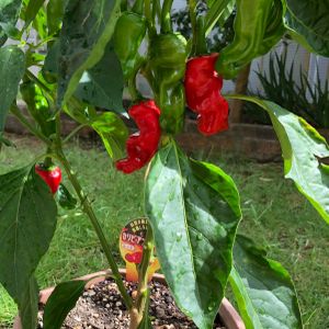 5月に苗から植えてずっと不調だったタカノツメが、まばらに実り色付き出しました。 その下は、梅雨の頃勝手に生えてきた子たち。ワッサワサです!! ちょっとした興味から手を出してしまったハバネロとカリビアンボンバーも、予想以上の大盛況🤣🤣🤣 あれ⁈ そう言えば、うちそんなに辛いもの好きじゃないのに、どうすんの⁉️😅