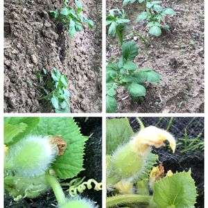夏植えジャガイモ🥔 野菜は待ってくれない😅という事で、右土寄せ前と、左土寄せ後です😺 シグナルメロン🍈畑の子。 右が日曜日、左が今日、受粉したのかな〜?少し緑が濃くなってる😊