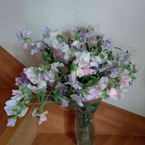 今日のお花『スイートピー』 4月にお出かけ先の直売所で購入(*´˘`*)♡ そういうば…スイートピーの葉っぱ付き🌿初めて見た👀💕 ボリューム満点💮