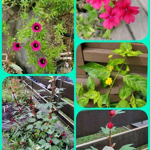 ①②③剪定したカリブラコア、又咲き出しました✨️🩷 ④⑤マリーゴールドのお花の黄色で、元気を頂きます✨️💛💛💛💫🍀