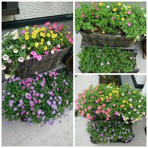 左が8月半ば 右上が8月末に切り戻して少し伸びてきた頃 右下が現在 姫小菊はまだまだ前ほどではないですが、カリブラコアは前よりワサワサになりました🌼 買ってきた苗を寄せ植えるとばらつきがでますが、切り戻して一斉に育つと整って綺麗に咲いてくれるのですね✨ 今までならもう枯らしてたのでGSで色々学ばせて頂いてるおかげです😌✨