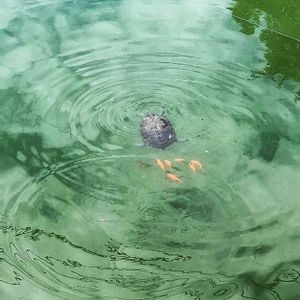 亀が金魚に追いかけられてた😳ナンデヤネン 慌てて逃げてる感じが可愛いー🤣ーぃい‼️❤️ 亀の池 (四天王寺)