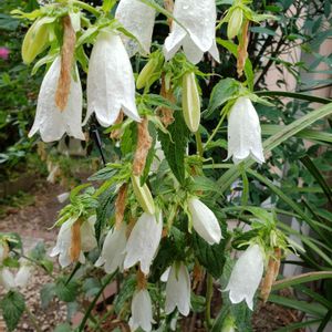 やっと晴れ間「ホタルブクロ」🤢ここ数日寒く花壇眺めの日でした😞咲いてますが😉ほぼ庭植え、風雨寒さで倒壊折れ曲がりしてます。最悪😖💦💨ここまで増えてくれたのに😓