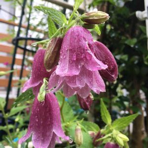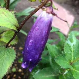 雨中のホタルブクロ。 庭の片隅でひっそりと可憐に。