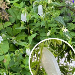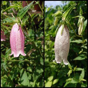 ホタルブクロ💜🤍 大好きなお花❀(*´▽`*)♡❀ いつの間にか 白色と紫色との割合が 8:2 ぐらいで白色が多くなって来てる 分けないといけないかな? 雨の多い時期☔️に咲くの でよく倒れてしまうけれど💦 家の東側のお隣との堺に 大人しく並んで咲いてます🎶
