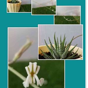 ハオルチア(硬葉)さん 春に咲こうとしてたお花が折れて又、出てきたと思ったら茎の長いこと😲‼️ つなぎpicで見てくださーい♪♪
