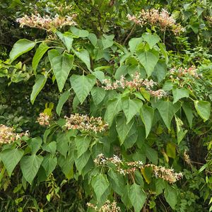 花柄が長くて白い小花が 枝先に集まって咲きます 花は甘い芳香があり アゲハチョウ類などの 多くの昆虫が〰︎ 蜜や花粉を求めて 訪れます🎶 臭木(くさぎ) シソ科
