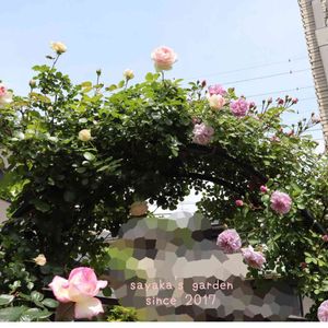 こんにちは😃 今日でGSを始めて1年が経ちました💕 皆さんの素敵なpicを拝見したり、お話しさせていただいたり、あっと言う間の楽しい1年でした❤️ありがとうございました❤️ これからもよろしくお願いします(❁ᴗ͈ˬᴗ͈) レイニーブルーとブランピエールさんのアーチがいい感じになってきました👍 薄紫と薄ピンクの組み合わせ、ほんと可愛いです(*´ч`*)