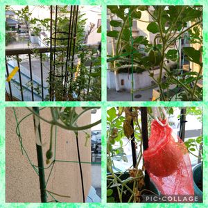 こんばんわ!暑いですね😅 今日からまた前職の溶接工に戻りました。 というわけで、我が家のベランダの様子です。 まず小玉スイカです。こちらも種から栽培して、長い時間が掛かっていますが、ようやく投稿出来るまで成長してくれました。 メロンも収穫に向けて着々と成長して、スーパーに売っている大きさと変わらないくらいまで大きくなりました🙋 このメロン収穫のタイミングが難しいです🤔