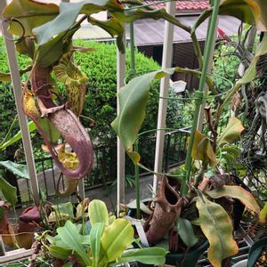 約22年前に高知県の西島園芸団地でひょうたんうつぼかずらという名前で迎えたN.alata とても強靭なので氷点下になるまで竿に吊るしてます❄️⬆️ 脇芽の出る速度が年々上がってるので相当老熟してるのかな⏳ 今年は遂に挿木に成功したので嬉しい😆 増やしていきたいです! 何故かGWには無かった多肉が挿さってる🌵笑