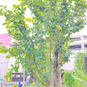 💚カリン(花梨)の実💚介護施設の庭にて 4/10に投稿したピンク色のカリンのお花が、 細くてツンとした、こんなに可愛らしい実をつけてました(5/10撮影) 昨年、この実を見た時、何かわからなくてGSで名前を教えていただき、カリンだとわかりました😊