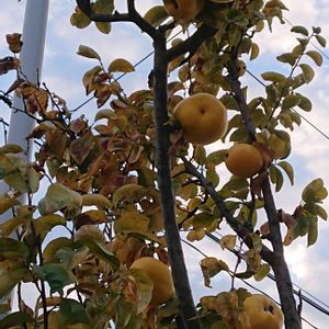 大きな花梨(カリン)と、富有柿をいただきました❣ なさい畑のお隣の畑に実った果物たちすごく甘くて、 JA祭で三等受賞し、無消毒で畑で食べちゃいました❣