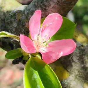 径2~3cmほど 雌雄同株 サーモンピンク花 5弁花 短枝の先に咲きます💕 花梨の花 バラ科