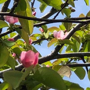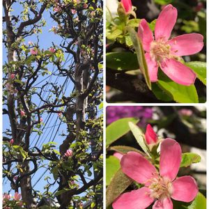 今日のお花あんずは無いので、 今沢山の花を付けている カリンの花を見て下さい😊💕 カリンの花の色すきなんです でも、実がなっても誰も喜ばないんですよね😥