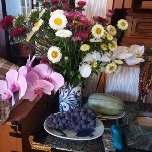 この前投稿の、鉢植え胡蝶蘭を思い切って切り、花瓶に飾りました。