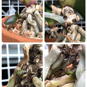 おはようmorning🎶 胡蝶蘭ピンク 早くも動き始めましたよ やはり大輪は強い😳 真ん中と下は同じ株 花茎の芯が黒カビに… だから脇芽が出て来たのでしょうね 上のも脇芽ちょっと🤏だけ出てきてます😉 これはこの後伸びるのか止まるのかは上の葉次第だな 残り3株は動きなし イヤ… 軟腐病の子は芽先落としたのでまだしばらくは動かないな 葉のない子はカゴに入ったまま 根だけメネデールに30分だけつけて乾燥しました