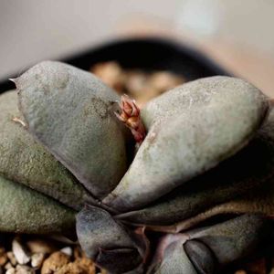 ぼてーっ。 地味〜。 まるでタン🥩のような ガステリア臥牛…🐮。 なんかよくわからない。 どう育つのが正解なの??笑 みんなの見てるともっとベタ〜っと ねてるイメージなんだけど… うちの子バンザーイって感じだよね🙄笑 春に鉢を大きすぎかな?ってのに 変えたのに 鉢底から大根のような根が見えてるよ😓