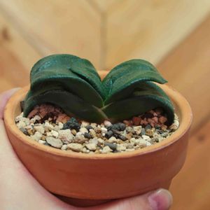 多肉福袋に入っていた臥牛さん。 ガステリアにあまり興味がなく、見かけてもきっと手を伸ばすことはなかっただろうなー うちに来たのも何かのご縁✨ この濃い緑に硬い葉っぱ。堂々たる佇まい。 眺めているうちに、すごく好きになりました(*´-`)💕なんだか、心が落ち着く感じ。 手前にも裏側にもピョコピョコ飛び出ているのはお子さまかしら…? 成長はゆっくりらしいので、のんびり見守っていきます☺️