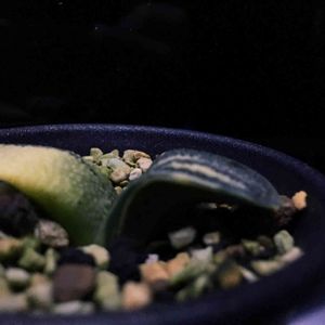 ガステリア臥牛錦 白斑が綺麗に出ている美株 写真は黒背景をテストした時のもの。 暗いとなかなかピントが合わないんですよね。