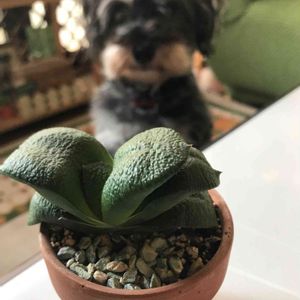 愛智園の『リトルワーティー』。 このガステリアさんは螺旋状に成長して、葉にかわいい点々が付きます(о´∀`о) 点々は葉より明るい緑色をしてて、葉っぱという夜空に綺麗な星が煌めいてるようなイメージです(о´∀`о)笑 ガステリアさんの中でも特に綺麗でかわいい子だと思うので、女性の方にオススメのガステリアさんです( ^∀^)
