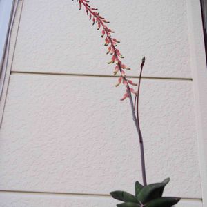 7月です....... 私の力量ではアングルに収まりきらないガステリア開花です。 多肉界では変化が鈍化な為あまり派手な人気は有りませんが、大変丈夫で放ったらかしにも耐えるとても優秀な逸品です。 おそらく、10年選手に成ろうかと云うこの株ですが、未だ3.5号鉢に植えられるサイズ感..... 老後のお楽しみに如何でしょう? 真夜中のオススメでした...(ちょっと酔ってます!)
