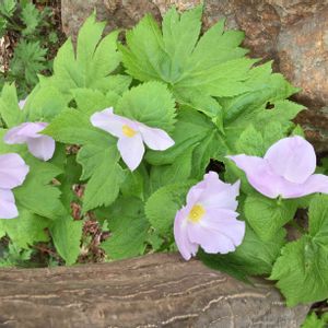 庭の奥(残雪たっぷりのあとに)片隅に咲いていました✨ シラネアオイの白い花も咲いていました😊💕