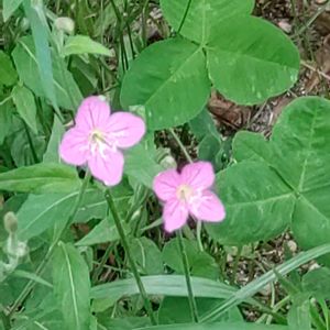 ユウゲショウ 紅い4弁花が 初夏の風に揺れて〜 アカバナ科 マツヨイグサ属 ムラサキカタバミ ハート形の3個の小葉 からなる葉☘️ 長い花茎の先に 5弁花がたくさん🌸 カタバミ属