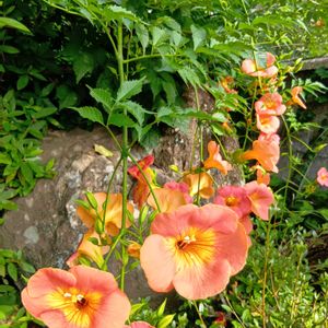 🌿🧡🧡ノウゼンカズラ🧡🧡🌿 何十年も咲き続けているノウゼンカズラ、、今年は花付きが良い様です🎶🤩🤗