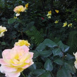 ❝ 薔薇 ‘ おぼろ月夜 ’ in 横浜イングリッシュガーデン ❞ ❛ 明るい曇り空、午後の優しい陽射しの許で 咲く美しい黄色の薔薇 手前のもう一輪を黄色く ふわっと 光る お月様のように 花弁の下方に蓄えられた雨雫💧が きらり ❜ こんにちは! コロナウィルス感染、気を緩めずに!。。。ですね! 《 出来るだけ、一枚一枚、別の人が撮った様な枠/形に嵌らない写真にしたい 》 なかなか、マイガーデンでの被写体が見つかりません・・・。 お出かけ先写真が多くなっています。。。 Oborozukiyo、 作出年:2012年、 作出者:日本、河合伸志さん、系統:HT とても美しい薔薇でした。 薔薇の写真は旧古河庭園、神代植物公園、港の見える丘公園、山下公園とレストランの薔薇園での大量のストックがあるので投稿出来るのは一部になります。。。 なんとなく思うベストから選ぶのではなくて、その時の気分に合った写真を選ぶ感じです。 自分が手間暇かけて育てる薔薇は育てるのが下手なので思うようになかなか咲いてくれませんが、プロが育てる薔薇をただ撮るだけなのでほんの二・三分間で済んで仕舞います。 純粋に撮るだけも、写真愛好家としてはとても面白いです! また、‘お出かけ先’での撮影の方が写真愛好家の観方では、ずっと恵まれた撮影環境であり、写真撮影としてはずっと奥が深く、楽しいです。‘綺麗に撮れて当たり前’の緊張感は少しあります。自宅での撮影では ❛お出かけ先写真❜ と肩を並べる写真を撮るのは容易ではありません。 今朝も我が家の庭の薔薇で綺麗に咲いているのは一輪もありませんでした。。。 短い時間ながら、実物の ‘ おぼろ月夜 ’が持つ自然・ナチュラルな色合い、色彩の深さなど、を活かして写し出すべく、撮影設定で工夫を試みています。 撮影日:2020年11月3日 午後 焦点距離220mm(=実効) 絞り:F/5.6