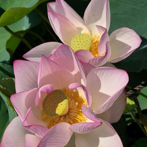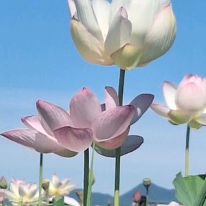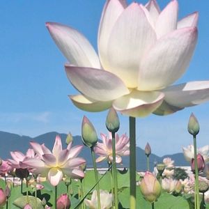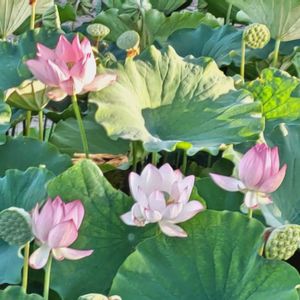 蓮(はす)✨ 白山さまの夏祭りに行ってきました! 同時期に蓮祭りとしても行なってます🪷 お昼過ぎなので花も蕾か開ききったのしか見当たらず…💦 今年は暑いせいか例年よりも背丈がより高い気がしました🤔 こちらには平泉中尊寺から株分けされた中尊寺ハスもありますが今回開花したのは見られませんでした🥺