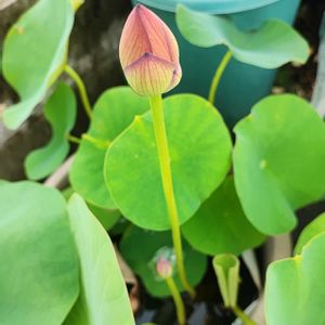 5/2に投稿した蓮の実がこんなに大きくなりました😊かわゆい。 ちょうど良い睡蓮鉢が無かったので普通の鉢にビニール袋で代用😋