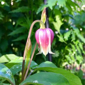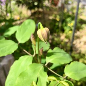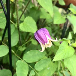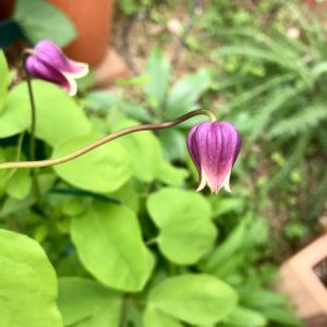 1ヶ月ほど前にお迎えした クレマチス桃の君🍑 小さな苗なのでお花は来年だと思っていたら咲いてくれました‼︎ なんて可愛らしい💖💖💖 壺型のクレマチスは初めてですが、ハマりそうです😍