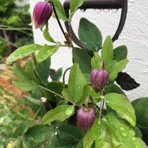 クレマチス・桃の君🍑 昨年はことごとく何者かの食害にさらされ😵💦1輪も花が見れなかった桃の君💠 無事に可愛い花を咲かせてくれました😊🎶 蕾も見えるので👀今年はたくさん花が見れたらいいなと😌✨ 🏷金曜日の蕾たち