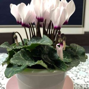 こんばんは🌙 今日は一日雪❄️が降っていました… 外はもう真っ白です😩 明日は早く家🏠を出なきゃ💦 先日道の駅で購入したシクラメンさん😆 うす〜いピンク色で可愛い💕 癒されます✨ 今日も一日お疲れ様でした😊
