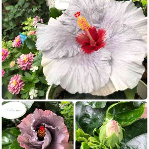 今日はハイビスカスが3個も咲いてました❣️ デニムブルー 1個🌺 ミセスユミ 2個🌺🌺 が、ミセスユミ1個はあっち向いてて一緒にpic出来ず😅